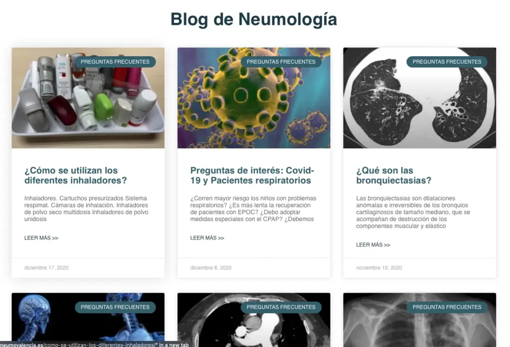 Un buen sitio web para neumólogos debe tener contenido educativo de calidad. Los pacientes buscan saber sobre:
